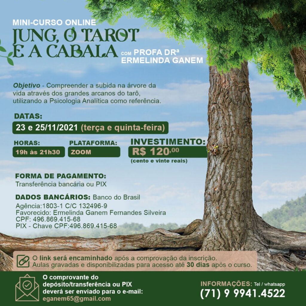 Ermelinda Ganem faz um convite para explorar as relações entre Jung, a Cabala e o Tarot através de um símbolo em comum: A árvore da vida. As inscrições podem ser realizadas via depósito bancário ou pix e o link de acesso as aulas serão disponibilizados após a confirmação do pagamento.